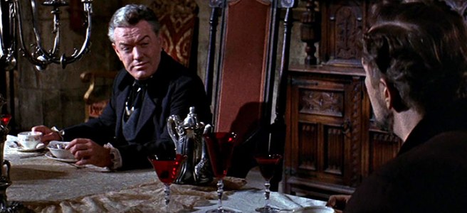 The 1963 horror film The Haunted Palace, based on a novella by H. P. Lovecraft, The Case of Charles Dexter Ward, opens with a young woman in a hypnotic state walking to the titular mansion, where she is met by the protagonist, Vincent Price as Ward’s ancestor Joseph Curwen, who leads her into the mansion’s depths, where he chains her before a covered pit, from which a green light and growling emanate. Before Curwen’s project can come to completion, an angry, torch-bearing mob pounds on the mansion’s door and Curwen and companion emerge with the young woman, who, fatefully for Curwen, is still mesmerized and unable to answer the questions the mob puts to her. Curwen is summarily burnt to death.